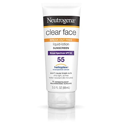 For acne-prone skin, applying sunscreen on your face can seem like a breakout disaster waiting to happen. That’s why Neutrogena developed their Clear Face Liquid Lotion. It still provides skin with UVA/UVB protection, but the oil- and fragrance-free formula is non-comedogenic, so it won’t clog your pores. Clear Face also boasts a water-light texture that leaves a matte finish that oily skin types will especially love.One Amazon user writes, “It’s perfect to wear under makeup, and it absorbs extremely fast with no oily residue.” Another user confirms its clear face claims, writing, “This is the only sunscreen I’ve found that doesn’t make my face break out.