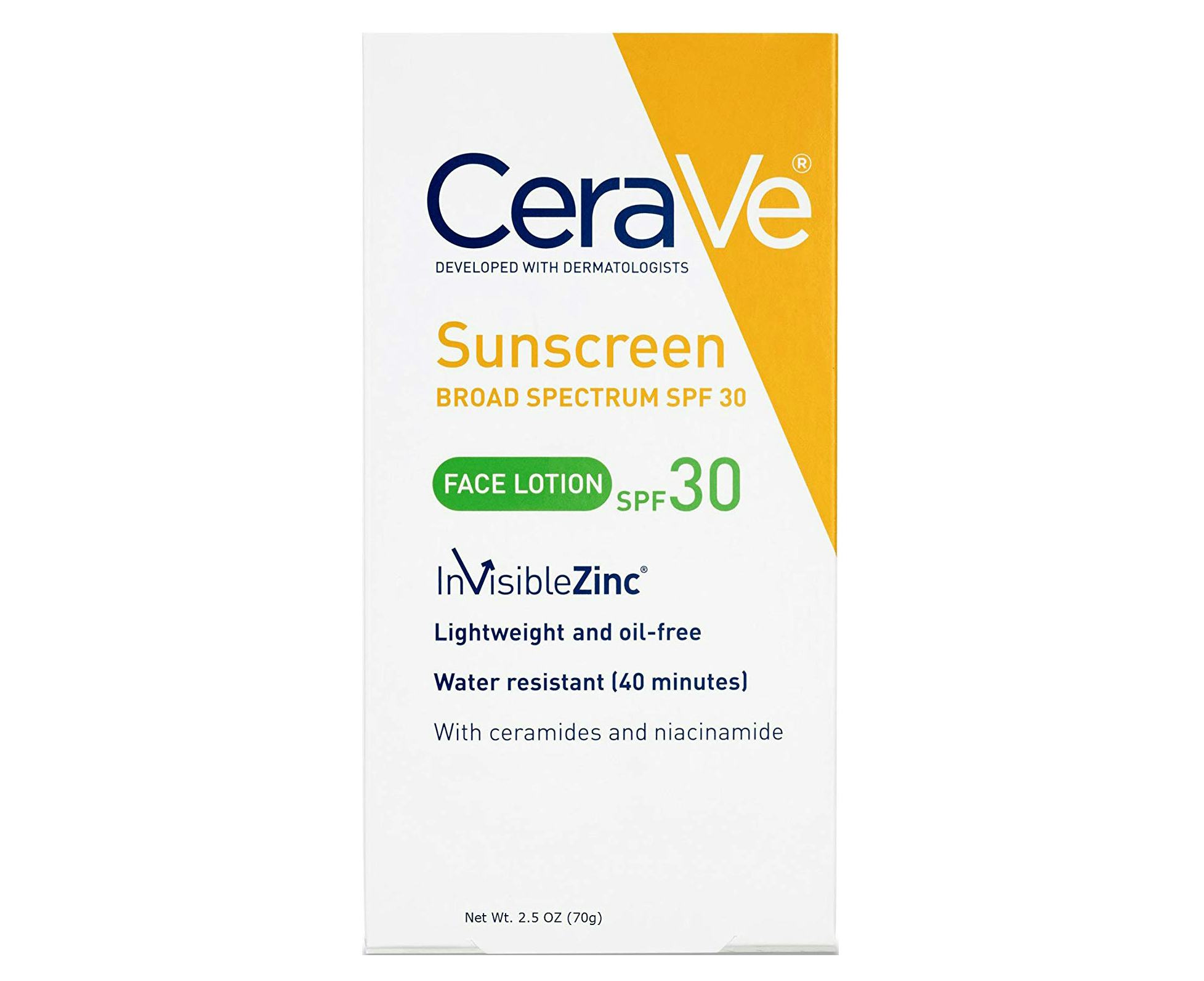 CeraVe Face Lotion SPF 30 is an affordable, mineral-based sunscreen cream that’s also dermatologist-approved. Like their regular face moisturizer, this formula also includes hyaluronic acid, ceramides, and niacinamide to moisturize skin and fortify its natural protective barrier. It dries clearly and is lightweight, water-resistant for up to 40 minutes, and easy to blend and wear under makeup. It gets bonus points for being sensitive skin-friendly, as its formula has been awarded the National Eczema Association Seal of Acceptance, and it’s oil-, fragrance-, and paraben-free, to boot.